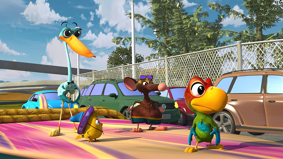 That began a journey that has lead Arnaiz to co-write and co-direct the CG animated feature El Americano, due for a U.S. theatrical release in March. El Americano tells the tale of a young parrot named Cuco, whose family owns a circus in Puebla that is threatened by a group of bullying birds. He decides to seek help from El Americano, the star of his favorite American TV show, and heads north with his friends to convince the superhero to come to his family’s aid. When Cuco learns his hero is only an actor in a fantasy show, he learns he is the hero his family needs.