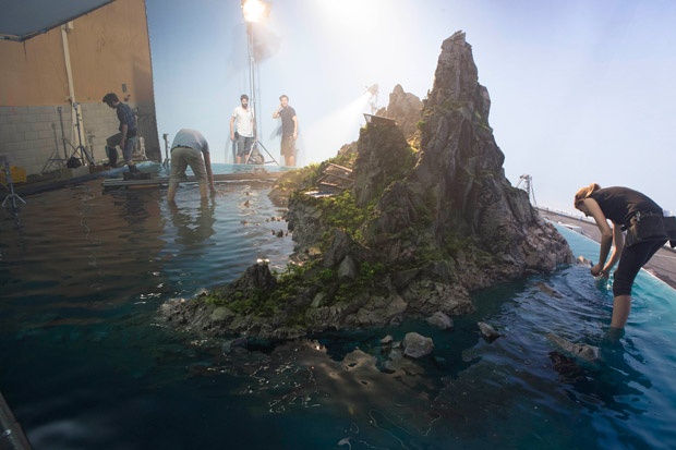 “Most of our world in Thunderbirds — all of our vistas, all of our buildings, our exteriors — are real models,” says Ridge. “They are live-action miniature models — and though I say miniature, actually they’re quite huge in the Weta Workshop — and built at different scales. They built two different scales of Tracy Island and filled a huge tank with water, so all the water around Tracy Island is completely real.”