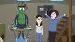 “We spend most of our time trying to figure it out,” adds Miloni. “We have a situation where we’ve got a normal, mundane thing — which is Jeff — and then we have a magical thing — which is the aliens — and we’re mixing those things together. … I think the way the story unfolds is where the comedy lies.”