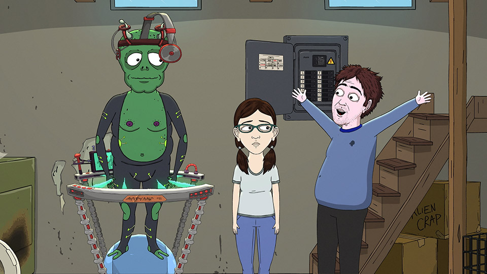 “We spend most of our time trying to figure it out,” adds Miloni. “We have a situation where we’ve got a normal, mundane thing — which is Jeff — and then we have a magical thing — which is the aliens — and we’re mixing those things together. … I think the way the story unfolds is where the comedy lies.”
