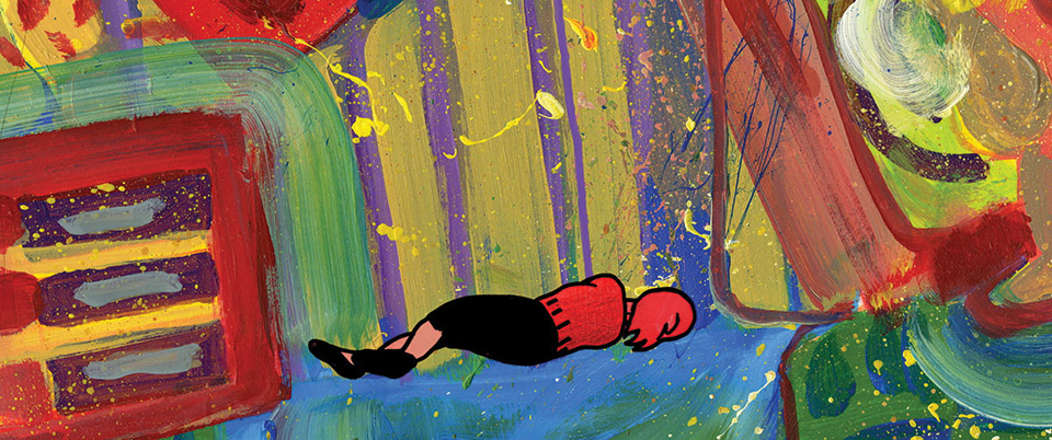 All of the movie was drawn on 8-1/2-by-11-inch paper and animated using After Effects. “There’s no lines that are made on the computer,” says Shaw. “I storyboarded it in color markers and so there was a guide for the whole movie and indications of how the color would be and how everything would look.”