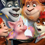 The poster promises even more animal antics in this next comedy-adventure installment, with a trio of hungry wolves and a couple of well-coiffed sheep looking on as an adorable little pig pops out of a magic hat, much to the conjurer’s surprise! Per the official synopsis:
