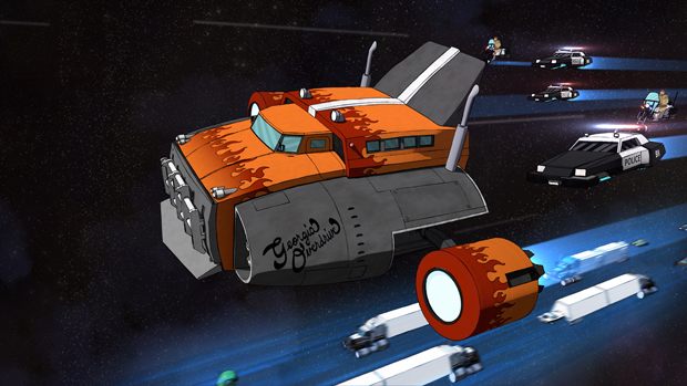 The series follows sassy space trucker Dallas (Dennings) and cowboy-hat-wearing-AI robot Robo (Cena) as they try and make a few dollars in the seedy world of interplanetary big-rigging, while navigating their way through cannibal bikers, rival space truckers and vending machine burritos.