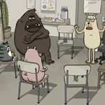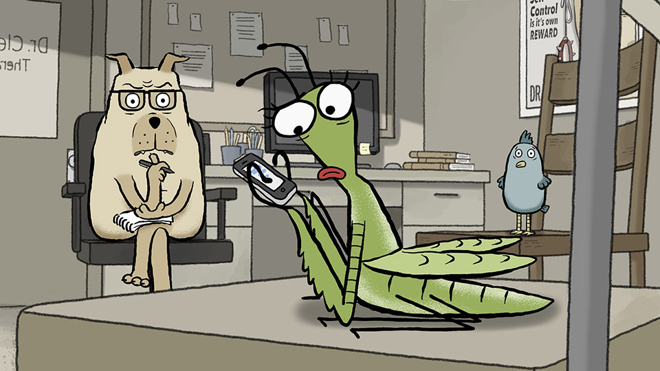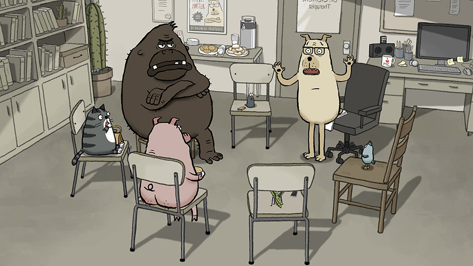 Being a psychotherapist can be a tough job when you deal with human patients. But life is even more of a headache when you’re dealing with a praying mantis with relationship problems, a pig with an eating disorder, a bird with guilt issues, an obsessive-compulsive cat, and a leech with separation anxiety. That’s the fun and quirky premise behind Animal Behaviour, the latest short by the Oscar-winning team of Alison Snowden and David Fine. Of course, things get really hairy when an ape with anger management problems joins the weekly therapy group.