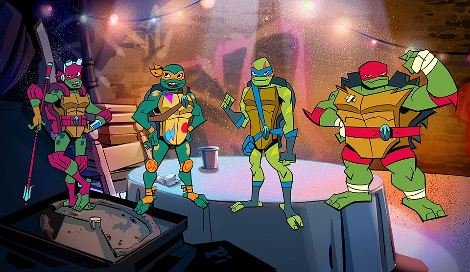 As usual, New York City is the playground for the pizza-loving heroes, but this time around, there is more to the Big Apple than meets the eyes. “The modern sides of cities like New York, Paris, London is always changing,” explains Ward. “They are always building and reinventing themselves, and we wanted to reflect that in the show. We wanted to celebrate the cultural melting pot aspects of the city, too — beyond Hell’s Kitchen and the dark alleys of the comic book. We wanted to bring new dimensions to create a show that popped rhythmically with this dynamic energy.”