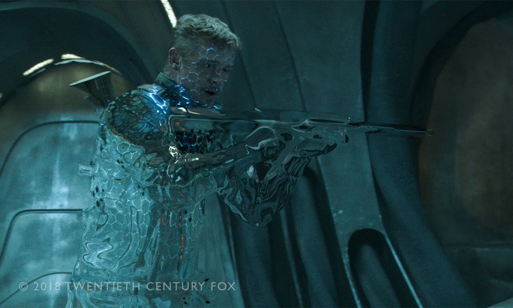 The cloaking technology, used by the alien creatures to become invisible, dates to the franchise’s 1987 original. In the current film, the effect has been refined into a three-dimensional field of iridescent, shimmering light with characters alternately solidifying and vanishing from sight in a matter of seconds. RSP tried its hand at the cloaking effect for a scene where it is used by a human character, Quinn McKenna (Boyd Holbrook), who suddenly becomes visible while engaged in a fistfight with another soldier.