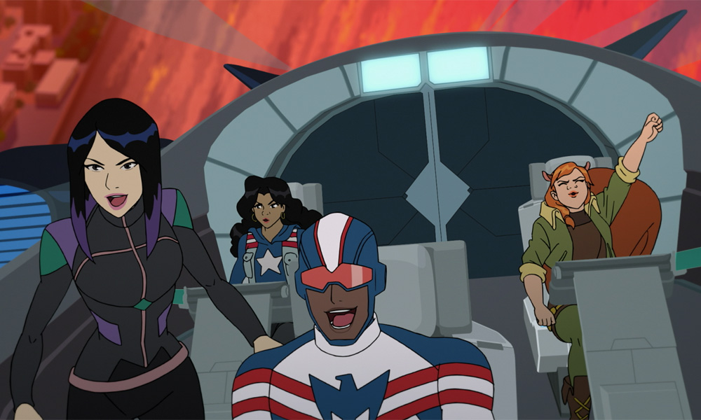 Marvel Rising: Secret Warriors follows powered-up teens Ms. Marvel (voiced by Kathreen Khavari), Squirrel Girl (Milana Vayntrub), Quake (Chloe Bennet), Patriot (Kamil McFadden), America Chavez (Cierra Ramirez) and Inferno (Tyler Posey) as they join forces as an unlikely, but formidable crew of aspiring heroes. When a threat no one could have expected bears down on the Marvel Universe, this ragtag, untrained band of up-and-coming heros have no choice but to rise together and prove to the world that sometimes the difference between a “hero” and “misfit” is just in the name.