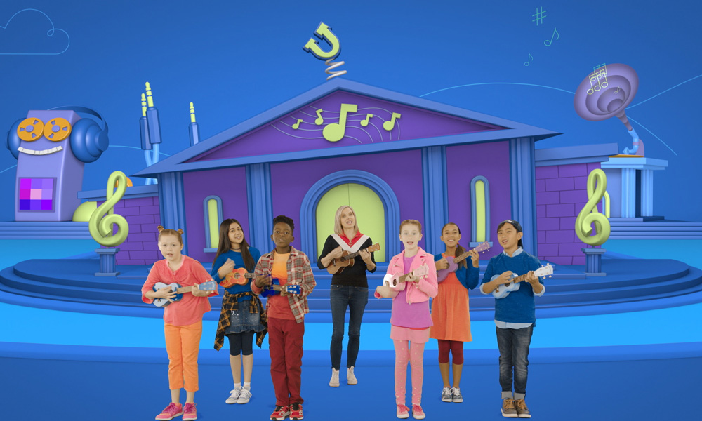 Ukulele U is a live-action series set against CGI backdrops, in which Melanie Doane is the musical ringmaster who leads a group of ukulele-playing kid performers, while inviting their friends at home to join in as they jam out to “kidified” popular songs. In many episodes, special guest stars, including some of the world’s greatest musicians, join Team Uke to play along, which makes for a unique treat for parents.