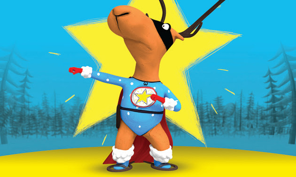 - Based on the book Jean-Michel Le Caribou by Magali Le Huche (Éditions Actes Sud). Super Caribou (48 x 11′ + 2 specials: 2 x 22′ / 44′) is produced by Autour de Minuit. Welcome to the lovely town of Brisiae with its charming town hall, post office, café and bus stop. Don’t hesitate to come and visit. This is a town where nothing happens! … Well, that would be true if it weren’t for the improbable inhabitants of Brisiae and their crazy antics. Luckily Jeremy the Superhero caribou watches over the town like Superman over Metropolis!