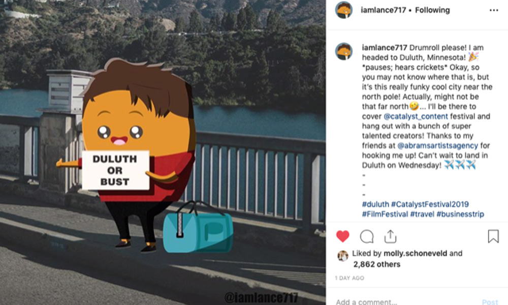 Sponsored by Abrams Artists Agency, the Catalyst Content Festival runs Oct. 9-13, bringing together content creators from around the world with Hollywood executives and agents to the Midwestern arts hub of Duluth, Minnesota. The event marks the first time that a virtual influencer has been invited to cover a major content festival.