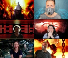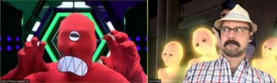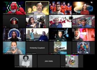 Each Friday, a hundred of the core creatives and crew on the film are using Zoom for their weekly production status meeting. Line Producer David Park had the idea to inject some whimsy into the proceedings by creating “themed” meetings. Several weeks ago, the first meeting took place with a theme: Virtual attendees dressed up as BBC newscasters (complete with appropriate backdrops) and a studio-wide practice was born. With input from the entire team, week 2’s theme revolved around “favorite albums,” with team members inserting themselves into iconic album covers from Sergeant Pepper to The Beach Boys’ Pet Sounds to Simon & Garfunkel’s The Sounds of Silence. Last Friday’s theme was sci-fi … or, as Locksmith called it, “Sy Fri.”