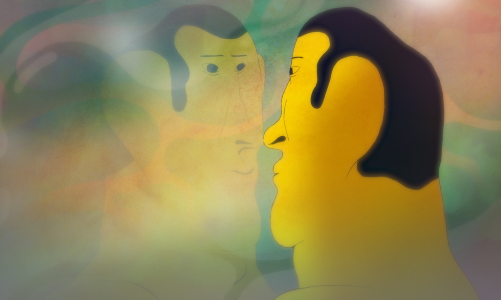 Mr. Mare is a surreal animated chamber play, set in a ‘haunted’ claustrophobic space, in which we witness the dynamics of unrequited love as we follow the relationship of an oddly codependent pair. Looking at an X-ray image a young handsome man is horrified to learn that the weird, tumor-like lump on his chest is the top of a tiny plump man’s head. Nested in his body, he is waiting to be born…
