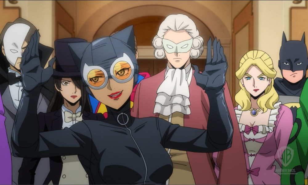 She may be bad, but she knows how to make an entrance! The Feline Femme Fatale is back in Catwoman: Hunted, the all-new DC Animated Movie out on 4K, Blu-ray and Digtal on Tuesday, Feb. 8. Produced by Warner Bros. Animation with director Shinsuke Terasawa (Gintama, Yo-kai Watch) at the helm, this new adventure puts a twist on the ol’ cat and mouse game with a vibrant anime aesthetic: In the exclusive sneak peek below (courtesy of Warner Bros. Home Entertainment), Catwoman crashes a luxe superhero/villain costume party with thugs on her tail.