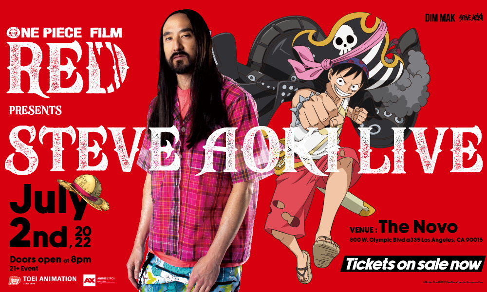 The legendary Toei Animation studio, in collaboration with the Society for the Promotion of Japanese Animation (SPJA) announced an exclusive Anime Expo (anime-expo.org) performance by two-time Grammy-nominated artist Steve Aoki to promote the upcoming release of One Piece Film Red, which will take place on Saturday, July 2 at The Novo in L.A. Live.