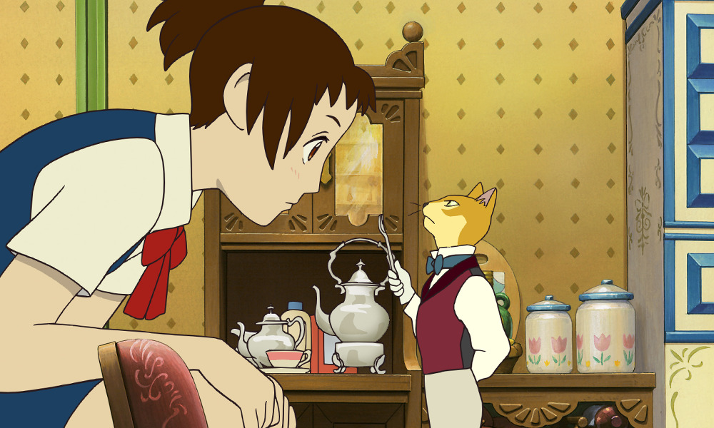 Directed by Hiroyuki Morita, The Cat Returns (2002) begins when quiet suburban schoolgirl Haru comes to the aid of a curious, talking cat. Her good deed attracts the attentnion of the King of Cats and his retinue, and Haru finds herself whisked away to a magical feline kingdom as the cat prince’s betrothed!