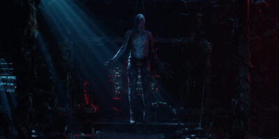 “That I can comment on!” he says. “It was definitely taken into consideration early on. We have done full CG creatures in the past. There was a lot of debate. You design as much as you can to make the proportions look interesting and for the creature to be iconic. It needs to stand out even if you’re just seeing a silhouette or a piece of him on camera, like an over-the-shoulder shot, or in different lighting scenarios. It was a team effort to take the idea on the page, make it into something that works on set and then augment it here and there with visual effects.”