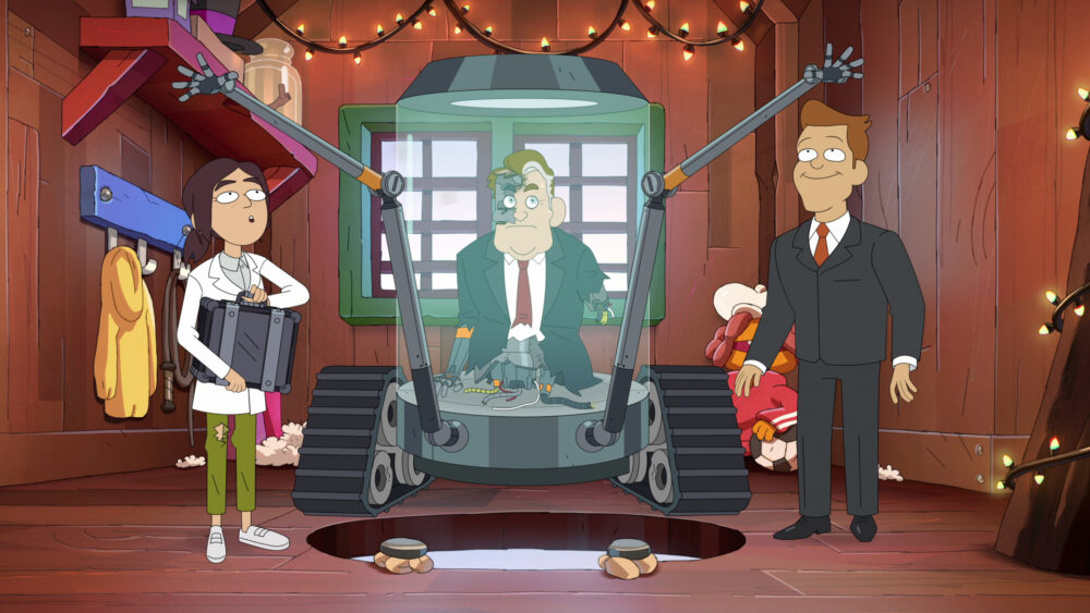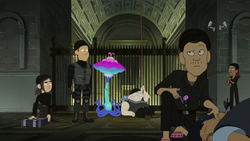 The returning cast for S2 includes Caplan, Christian Slater as Reagan’s dad, Rand Ridley; Clark Duke as DC yes-man Brett Hand; Andrew Daly as crafty Cognito CEO J.R. Scheimpough; Bobby Lee as free-spirited biochemist Dr. Andre Lee; John DiMaggio as the hybrid super soldier Glenn Dolphman; Tisha Campbell as Cognito’s Head of Media Manipulation & Subliminal Messages, Gigi; Chris Diamantopoulos as ROBOTUS and Brett Gelman as Magic Myc, a psychic mushroom-y hive mind from Hollow Earth.