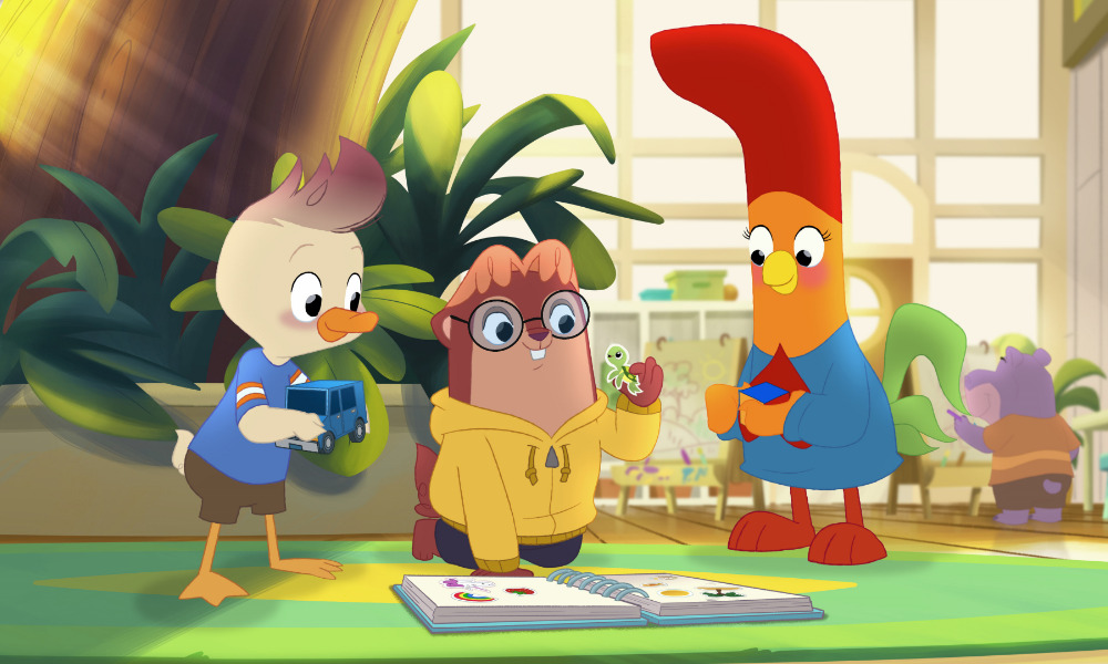 “ A chicken who interrupts? What’s not to love?!” Holsey asks. “I came up with a take and Loris and I pitched it to the various networks and streamers. And it just so happened that Tara Sorensen, head of kids’ programming at Apple, was also a fan of the book and had already been interested in turning it into a series. She liked my take and we were off to the races.”