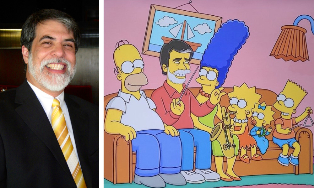 The memorial card features a Simpson-style caricature of Ledesma with a conductor’s baton sitting on the famous family couch between Homer and Marge, as Lisa, Maggie and Bart play instruments, and reads “In loving memory of Chris Ledesma.” The tribute has been shared by many of Ledesma’s Simpsons colleagues on Twitter — including Schaefer, writer/co-executive producer Carolyn Omine and producer/director David Silverman — among many memories and admirations about the accomplished maestro.