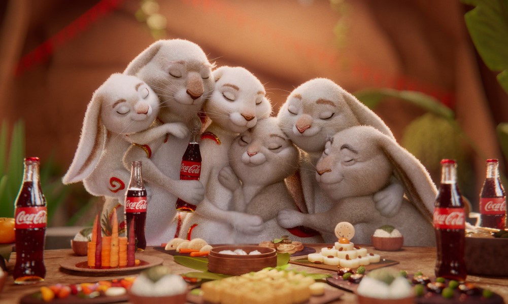 Titled Celebrating Together Is Magic, the CG-animated piece is a poignant story about a family of rabbits who overcome their differences and unite for a holiday meal — complete with bunny-sized bottles of Coca-Cola and many other narrative details that augment the intimacy of the scene.