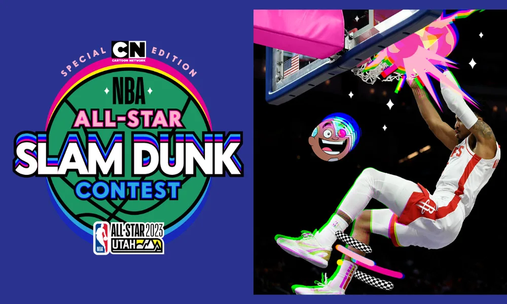 The Cartoon Network Special Edition: NBA All-Star Slam Dunk Contest Presented by Jordan Brand marks the second mash-up between Cartoon Network, the National Basketball Association (NBA), and Warner Bros. Discovery Sports, featuring characters from the popular Teen Titans Go! animated series putting a wacky superhero spin on the competition.