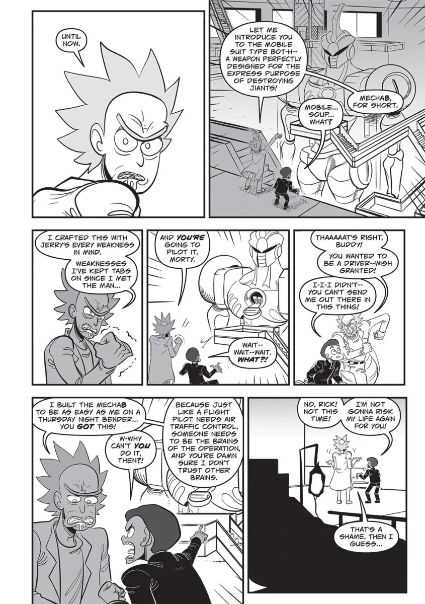 “Rick and Morty has always skewered and elevated pop culture tropes through an irreverent lens, and Get in the Robot, Morty! takes on the beloved genre of mech-fighting manga with that characteristic sardonic flair. Fans of adult animation who’ve followed from Toonami’s Midnight Run to Adult Swim’s Rick and Morty are going to find characters, humor, heart and of course bloody, outrageous battles they know and love in these pages. If anyone could make Gendo Ikari look like a reasonable parent, it’s Rick Sanchez,” says Senior Editor Bess Pallares.