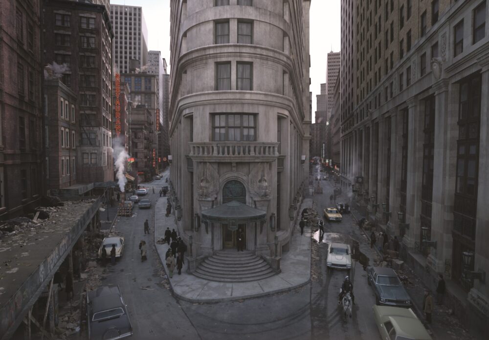 In total, 1,400 visual effects shots were created for the miniseries. “We tried to keep the vendor list relatively small and most of the set pieces were fairly self-contained,” says Decker. “Crafty Apes handled The Continental set extensions while Zoic Studios did Chinatown. Those assets could be developed and created separately because they did not have any interaction. Charlie’s scrapyard was Spin VFX and FuseFX did our Manhattan Bridge sequence in the first episode.”