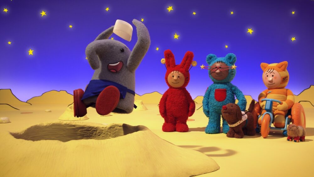 “In Mixmups, I wanted to create a universally appealing show which would burst from screens like a seaside candy store of creativity, bright, tangible, sweet and funny, capturing the magic of play and the ability of preschoolers to disappear into their own imaginations, but with unprecedented attention to the lived experience of disabled children and families,” said Atkinson.