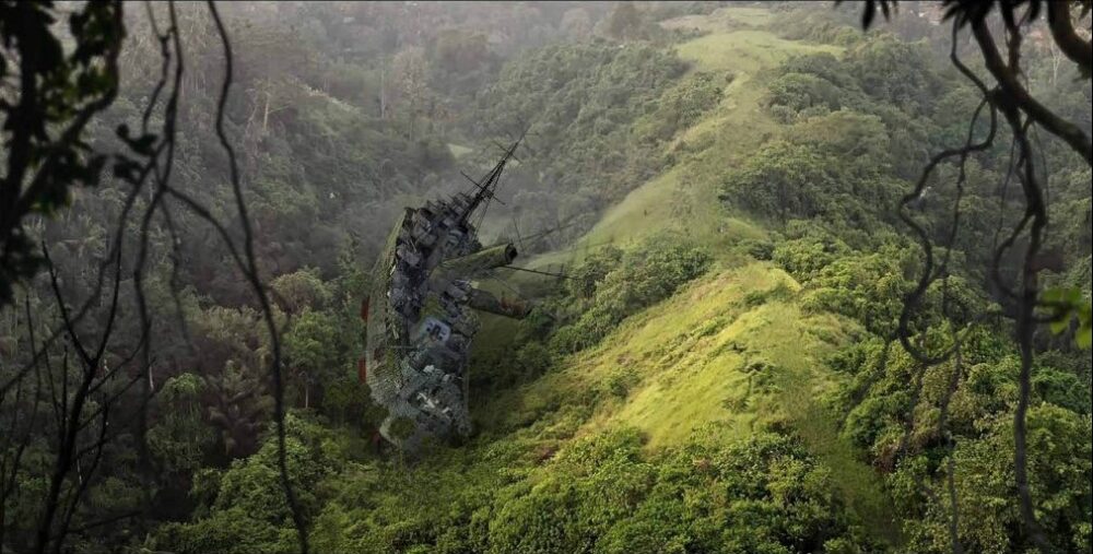 Opening the series is what looks like lost 16mm footage of William Randa (John Goodman) being chased by a Mother Longlegs and encountering a Mantleclaw, while later on in the same episode, Kate Randa (Anna Sawai) witnesses the destruction of the Golden Gate Bridge by Godzilla. “Matt Fraction did a brilliant job of taking the aesthetic and tone of Kong: Skull Island and Godzilla, and then having the rest of the show feel like this unique story,” notes Sean Konrad, the show’s VFX supervisor. “That one shot of Kong destroying the helicopter is a straight lift from Kong: Skull Island but the rest of the footage captured by William Randa was freshly shot for the show.”