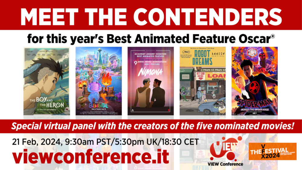 Moderated by Ramin Zahed, editor-in-chief of Animation Magazine, the live, one-hour Oscar Contenders for Best Animated Feature session brings together an elite group of acclaimed filmmakers for an inspiring and lively discussion. It takes place Wednesday, February 21 at 9:30 a.m. PST / 5:30 p.m. GMT / 18:30 CET. Register for free at the VIEW Conference website.