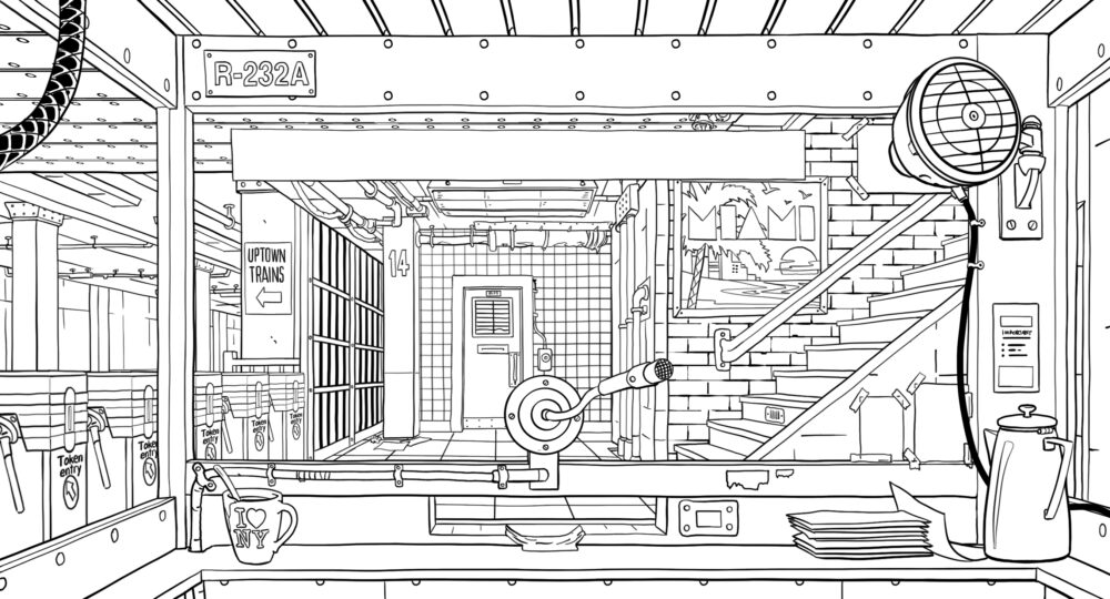 The toughest thing was learning how to draw N.Y.C. fire escapes properly! I’m joking, but the biggest challenge was probably learning to be comfortable sifting through tons of photos — literally thousands throughout the film — related to both generally N.Y.C. and also to specific scenes such the subway platforms, the junkyard (based on Willets Point), the Chrysler Building observation deck, Playland with its boardwalk and arcades at Ocean Beach (which of course was based on Coney Island), the ski hills and ski bus, the Bowling Alley (which was inspired by the one seen in The Big Lebowski) and many more. We looked at 1980s movies which had footage of New York, such as Martin Scorcese’s After Hours, for the design of the subway booth scenes.