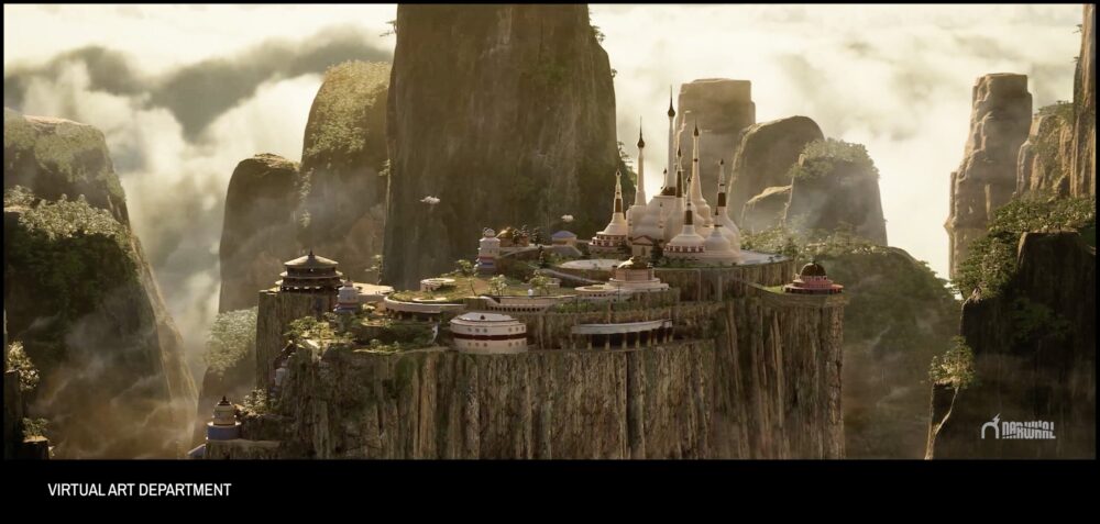 In supporting Avatar: The Last Airbender, Narwhal Studios served as the Virtual Art Department (VAD) that helped blend established filmmaking methods with real-time design techniques. This collaboration aimed at designing the Four Kingdoms and improving pre-production through real-time design.