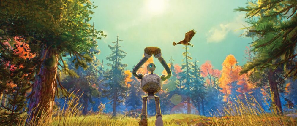 “Put simply, the style of this film needed to be worthy of the story we were telling,” Sanders points out. “Wild Robot is set in the natural world, and the business-us-usual photorealistic CG look we’ve become habituated to would look tired and cheap. We needed grace, power, and poetry in our visuals. I proposed a question: can the painterly studies we generate in early stylistic exploration be identical to the end goal? Can our visual departure point also be our destination? Can this film look like a painting? The answer from our artists and engineers was a resounding, ‘Yes!’ DreamWorks built on the advances seen in The Bad Guys and Puss In Boots: The Last Wish, pushed the boundaries from there, and created something never seen before. Several times now, in central dailies, I’ve been looking at what I thought was a piece of development exploration, and someone pushed the play button … and it started moving: it was a finished shot from the film!”