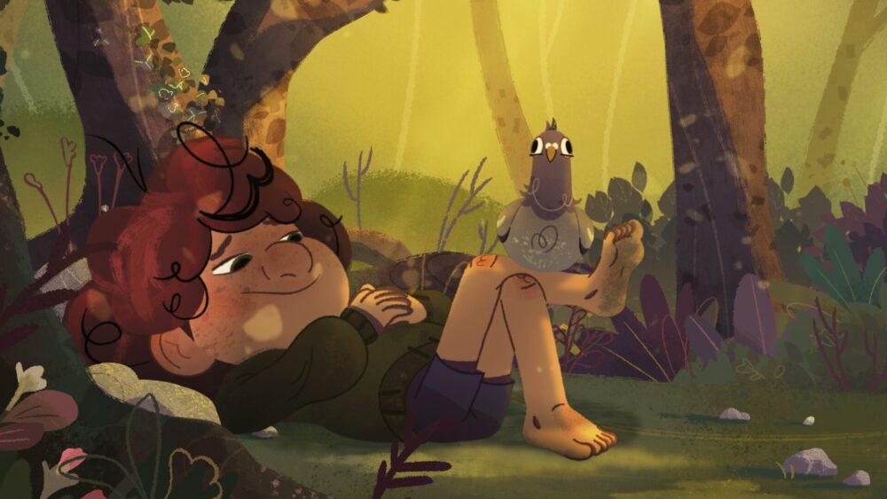 Póg mo Pigeon (a play on the Irish phrase, “póg mo thon,” meaning “kiss my a–”) is “entirely home-grown, and tells a decidedly Irish story,” the studio shares. Set in West Cork in the 1970s, the 2D piece tells the story of Mikey, a young boy who escapes the watchful eyes of Mammy’s Sacred Heart icon by escaping into the freedom of the forest. It’s here he meets Pidgey, whose free-spirited sense of adventure offers a welcome release for Mikey.