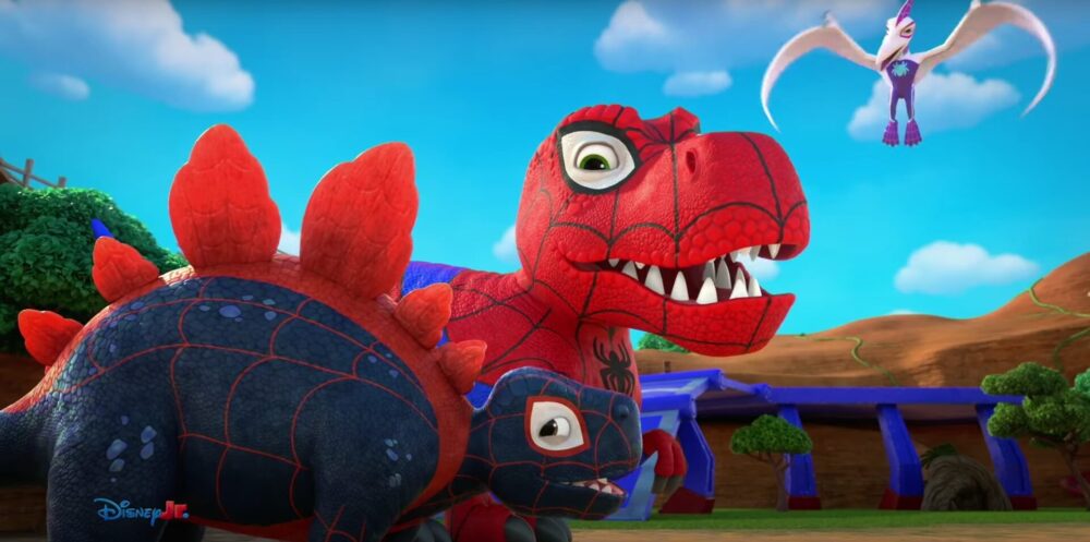 A new mutation is in store for the Spider-heroes, with Friday’s launch of the new Dino-Webs story arc in preschool animated series Marvel’s Spidey and His Amazing Friends. In a new sneak-peek clip, a prehistoric pal imbues the Spidey Team’s suits with dinosaur transformation powers!