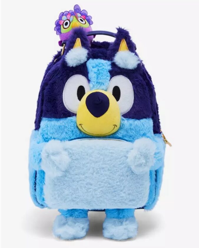 And it’s pure puppy love with the Bluey collection — for kids and adults! Apparel, accessories, plush pillows and more,like the fuzzy Our Universe figural mini backpack [$75], are waiting to come home with you.