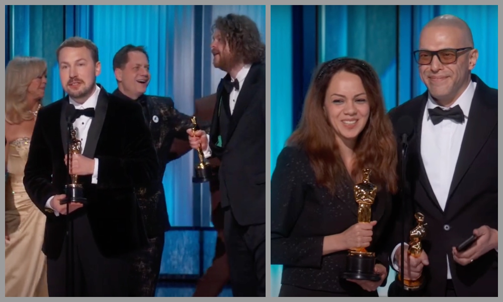 After thanking his team, releasing studios Sideshow and Janus Films, Blender, his mom and dad, and cats and dogs, Zilbalodis said, “We’re really moved by the wide reception the film has had around the world and hope you open doors to independent animation filmmakers around the world. This is the first time a film from Latvia has been honored with an Academy Award so it means a lot to us….We are all in the same boat. We must overcome our differences and find ways to work together.”
