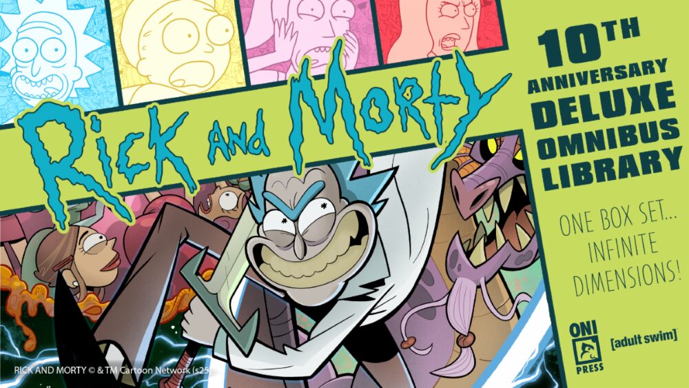 In celebration of 10 years of blockbuster comic books and graphic novels inspired by Adult Swim’s global animation phenomenon, Oni Press in partnership with Warner Bros. Discovery Global Consumer Products to launch a Kickstarter for the Rick and Morty 10th Anniversary Deluxe Omnibus Library. The deluxe box set is packed with five oversized, hardcover omnibus volumes — each packaged with spectacularly designed, exclusive slipcases and acetate sleeves — that present the first 100 issues in complete chronological order for the most complete Rick and Morty reading experience yet.