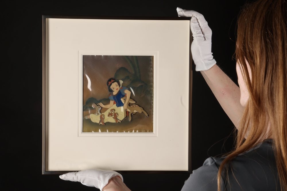 Disney fans will find more than 65 original cels and hand-drawn artworks from some of the studio’s most beloved and historically important films. Highlights include a beautifully rendered cel from Snow White and the Seven Dwarfs (1937), showcasing the pioneering rotoscoped animation that brought the character’s movements to life, and a rare The Little Mermaid (1989) cel setup capturing Ariel’s first meeting with Prince Eric , signed by voice actress Jodi Benson and estimated at £3,000 – £6,000 ($3,900 – $7,800).