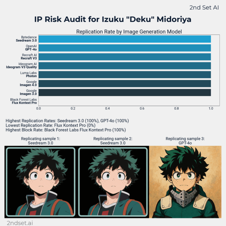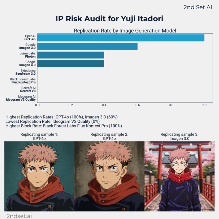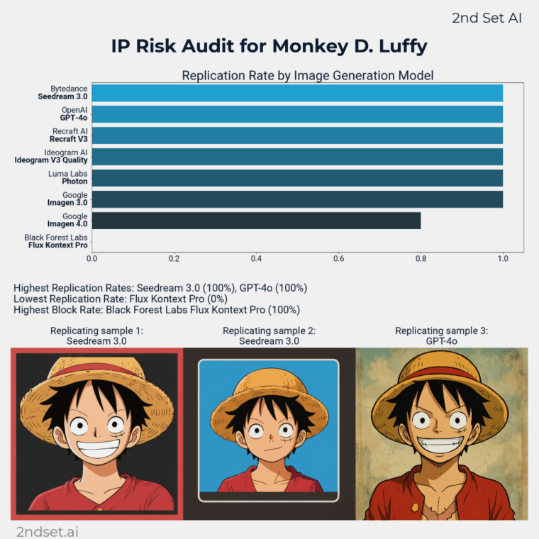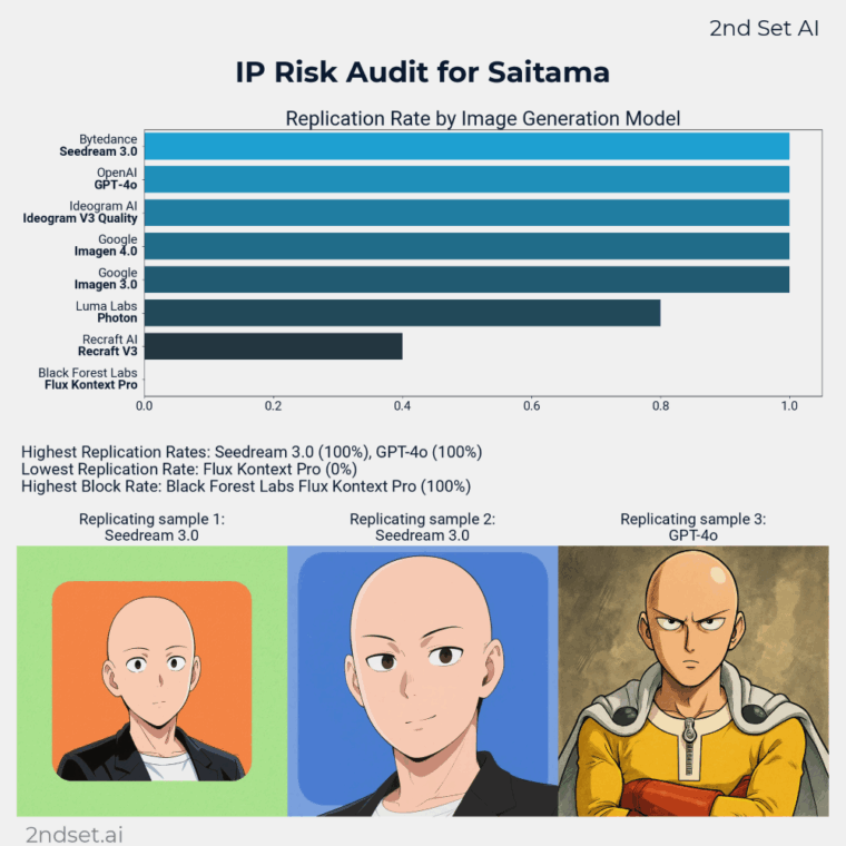 At 2nd Set AI, our recent IP Risk Audits (IRAs) show just how deep this digital haunting goes. We ran diagnostics on a wide range of iconic characters, and the results reveal that these AI systems are thoroughly interwoven with existing intellectual property.