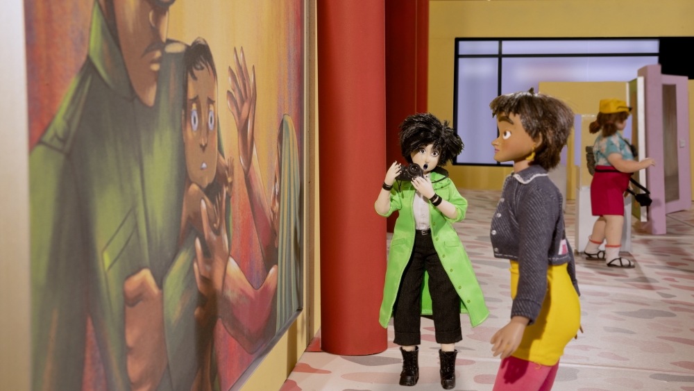 The stylish puppets created for the show were about a foot tall, made for a 1:6 scale production. “When you hold them, they really feel like dolls,” says Cordova. “Every time I visited, I was too much in awe. The sets ranged from 4×4 feet to 12×12 feet, depending on the need. For example, in the fifth episode, we feature a big and extravagant New Year’s Eve party. That set was really big and impressive in person. I remember also finding some of the big, expansive exteriors kind of humbling, realizing that a team of artists went through so much effort for a scene that was ultimately me and the writers being silly.”
