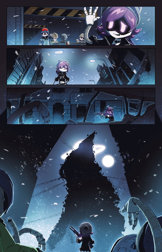 Multiple Eisner and Harvey Award-winning publisher Oni Press and independent animation studio Glitch Productions have revealed a first look inside the upcoming release of Murder Drones #1, the first issue of the brand-new, six-part adaptation of the global smash-hit animated series created by Liam Vickers. After racking up more than 330 million views on YouTube and subsequently making its streaming debut on Prime Video, Murder Drones is heading to comic shops worldwide with a new limited series from writer Wyatt Kennedy (Nights, Wiccan: Witches’ Road) and artist Jo Mi-Gyeong (Eve, Dark Crystal: Age of Resistance).